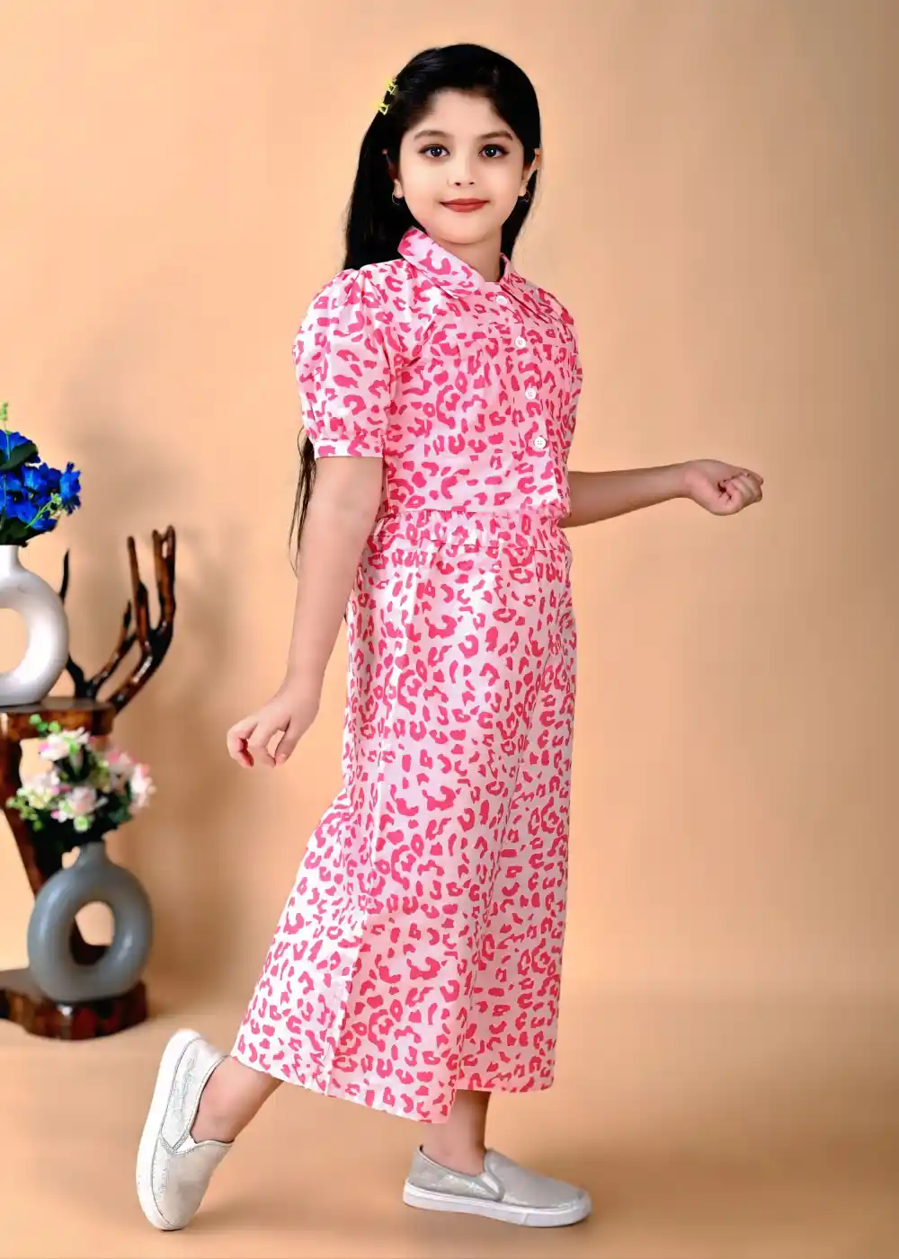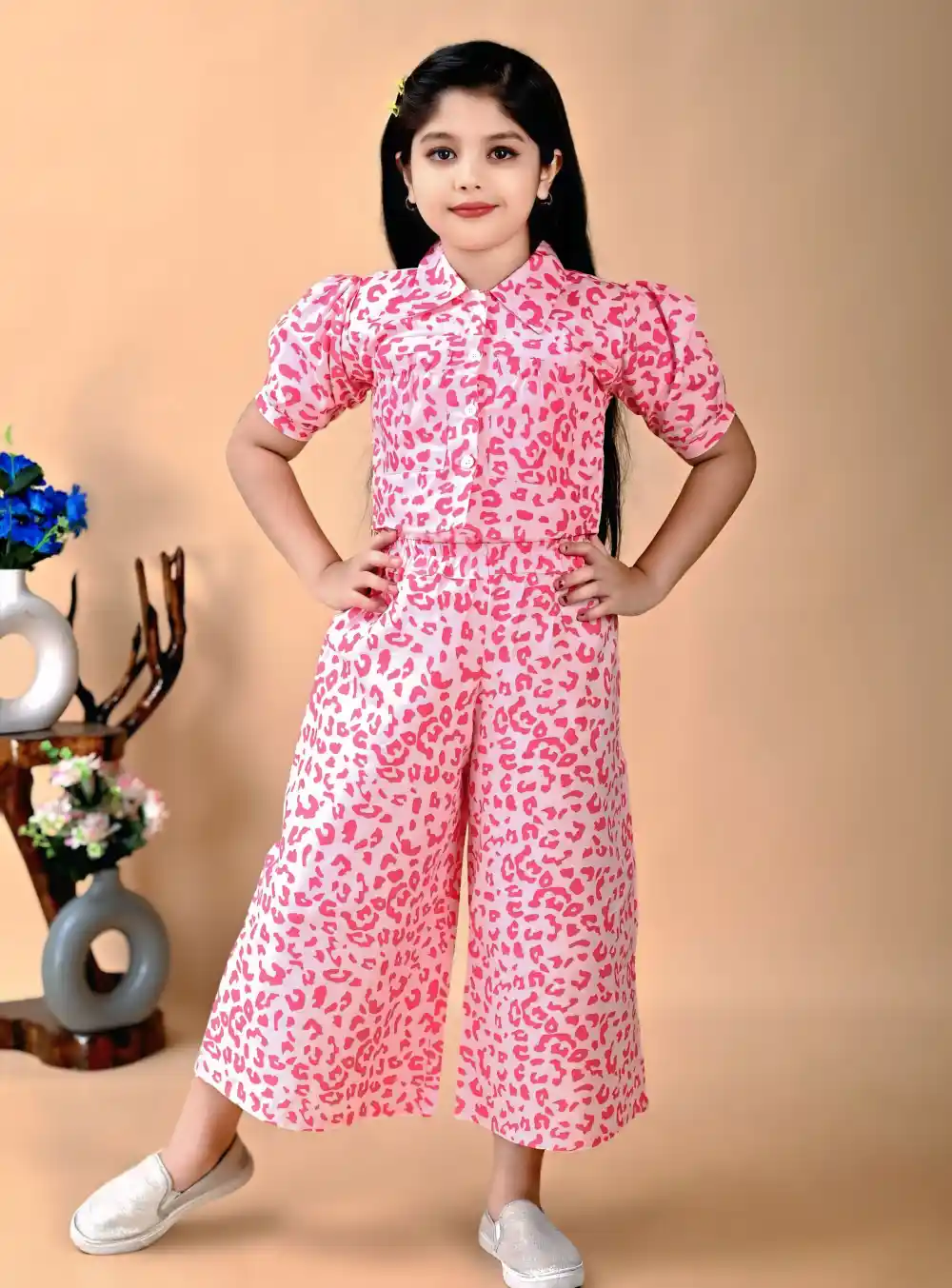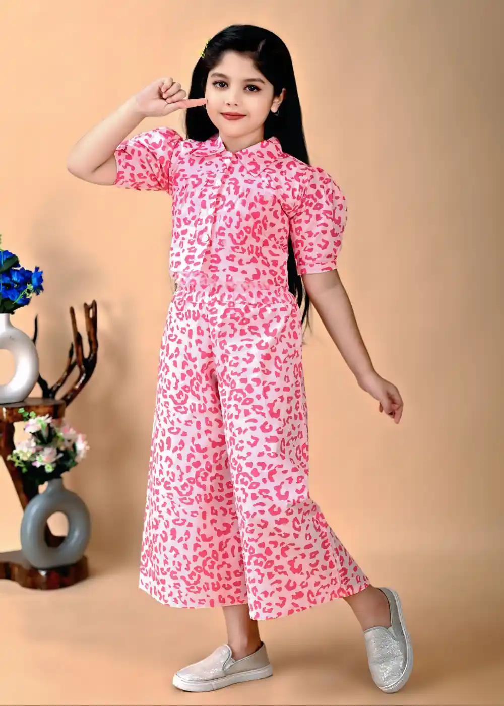 This tiger print pink top and palazzo set is designed for a modern and fashionable casual look. The printed top adds a bold style element, while the palazzo pants provide a relaxed and comfortable fit. Suitable for daily wear, casual outings, or informal gatherings, this set can be styled easily with flats or sneakers for a balanced and effortless appearance.