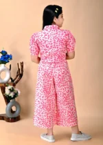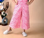 A trendy pink top with tiger print paired with comfortable palazzo pants. Ideal for casual outings and everyday stylish wear.